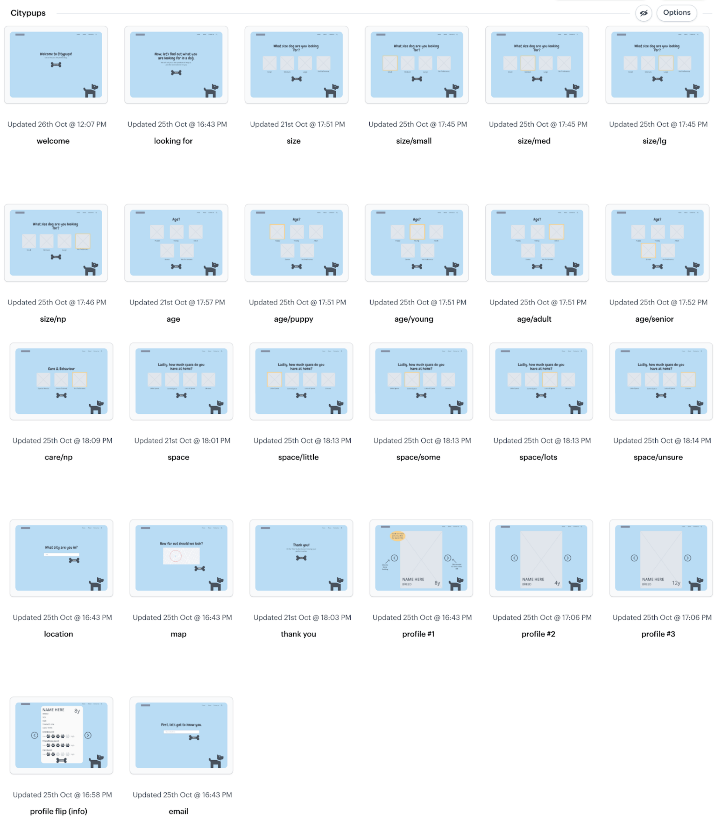 These flows represent the 3 different ways users can reach their end goal of finding the right dog using the CityPups website.